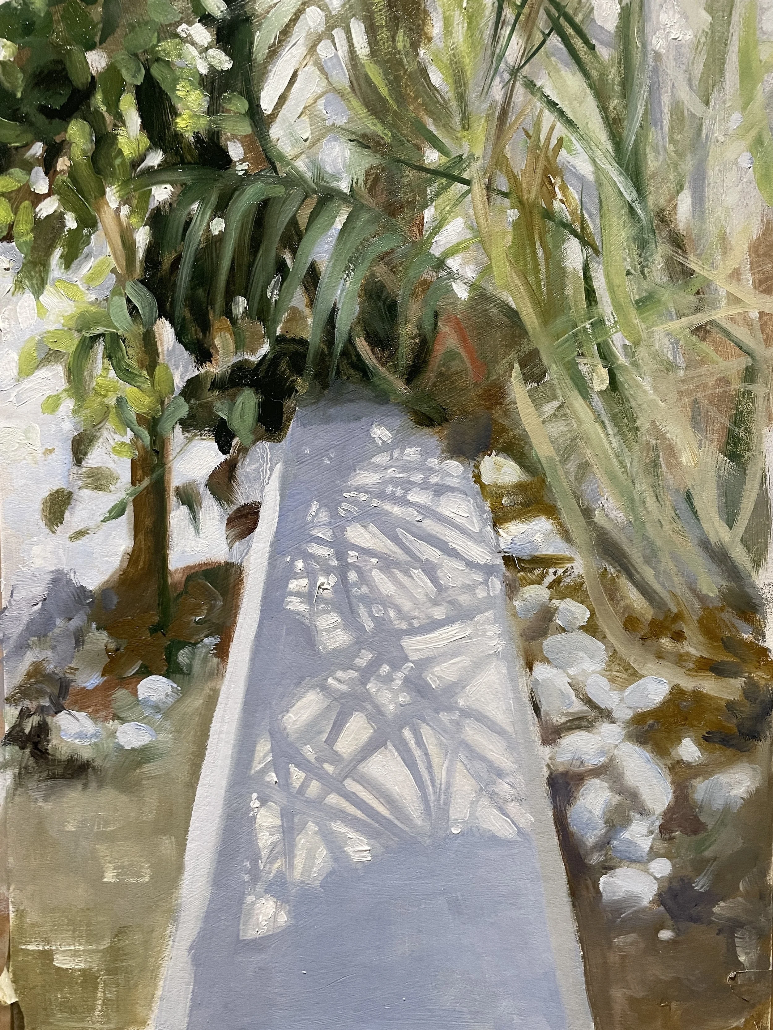 The effects of light on any subject but particularly nature, are a very important part of my painting work. The light shining through and onto foliage or a rough surface producing patterns and colour changes are what I look for. Equally the shapes made by bodies in the study of moving people and in portraiture slight changes which can define personality. the intention is to catch emotion!