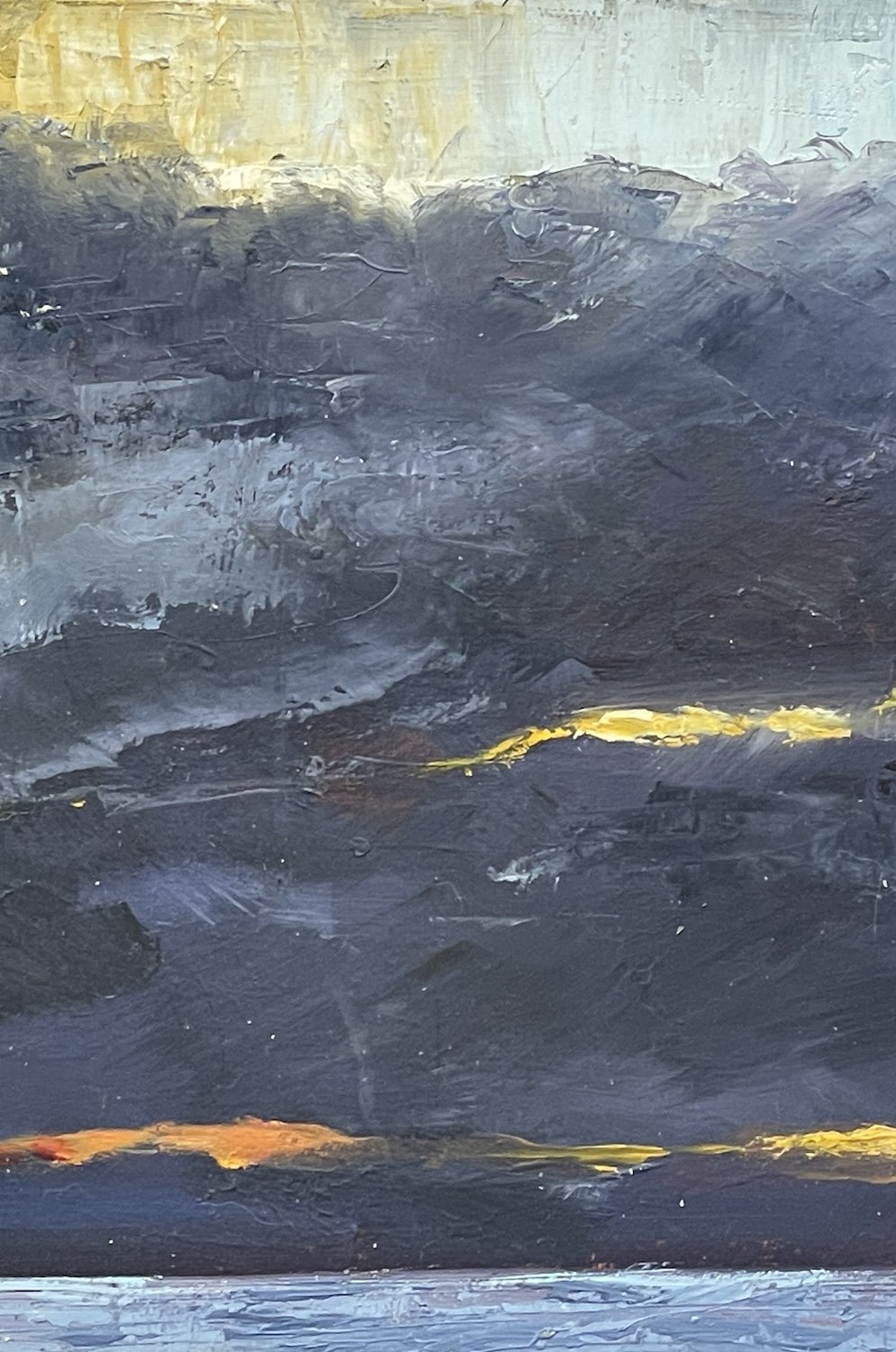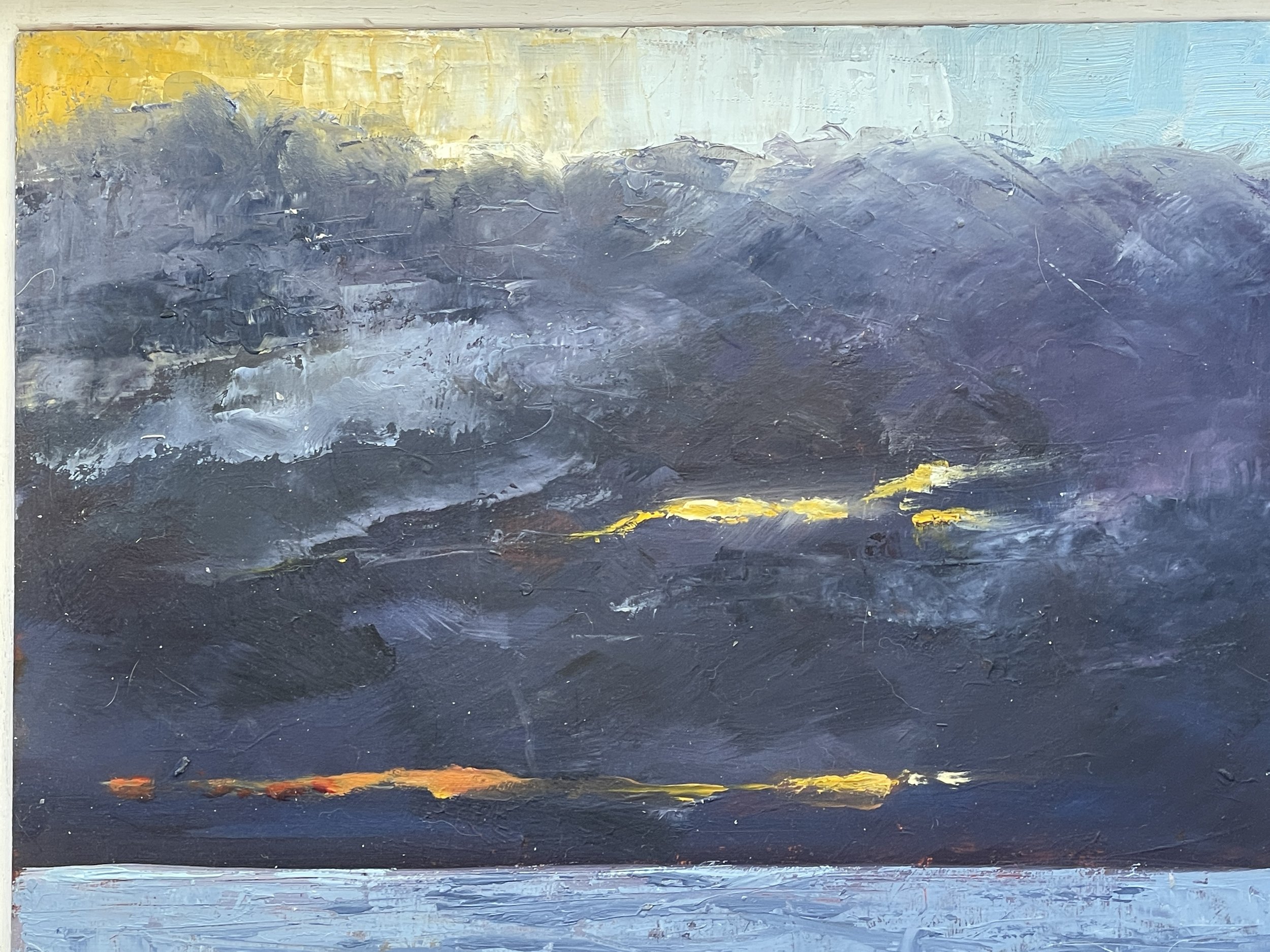 We are blessed on Portland. We get to see both sunrise and sunsets over the sea. This painting was initiated by another early morning walk with the dogs up near the Grove Prison (you can see the buildings)